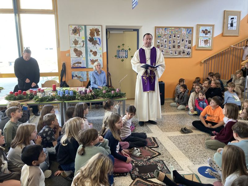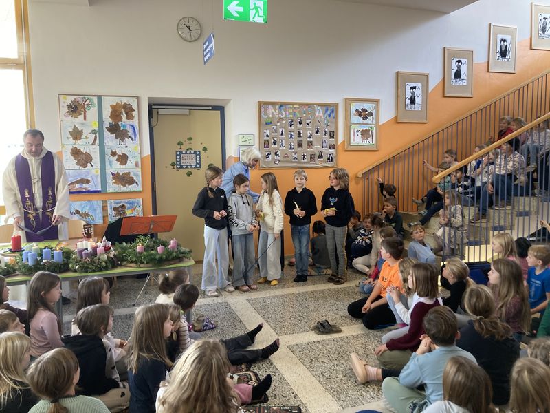 Die heurige Adventkranzsegnung fand am Montag, 1.12. in der Aula statt. Feierliche Lieder aus dem Religionsunterricht und von unserem VolksCoolChor verbreiteten vorweihnachtliche Stimmung.